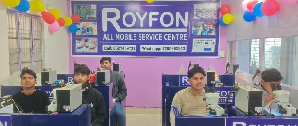 Royfon Katihar ka best mobile repairing institute hai jahan Android & iPhone repairing, chip level training, software & hardware course practical ke sath sikhaya jata hai. Join Royfon today.